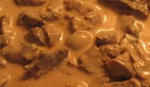 Em seu preparo original, o prato leva cubos de carne bovina em um molho de creme de leite. Mas ao longo do tempo foi se criando novas versões do prato. Em 1912 foi adicionado cebolas, extrato de tomate servidos com batatas-palito, uma decoração típica da Russia.